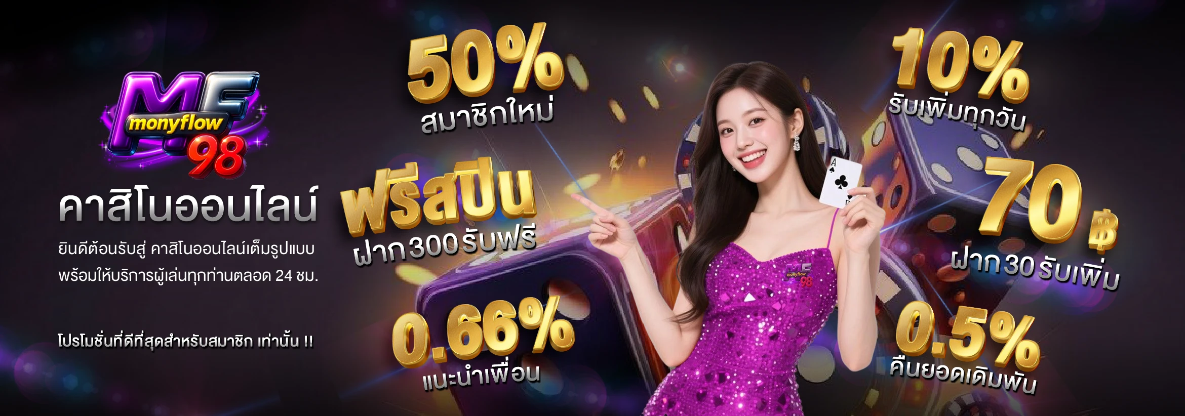 - โปรโมชั่นโดนใจ เช่น โบนัสสมาชิกใหม่, คืนยอดเสียรายสัปดาห์