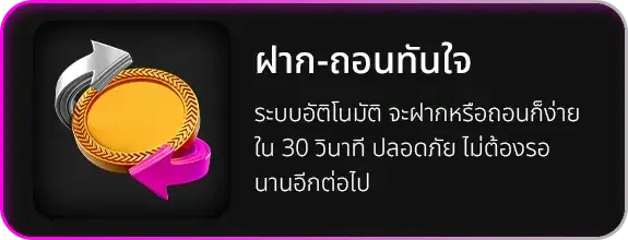- ระบบฝาก-ถอนอัตโนมัติ ทำรายการได้ภายในไม่กี่นาที